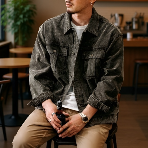 남자 헤비 박시 데님 상의 코트 카고 점퍼 박시 사파리 점퍼